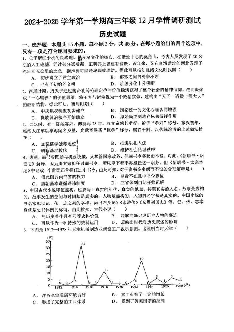 江苏省扬州市高邮市2025届高三上学期12月学情调研测试 历史.docx