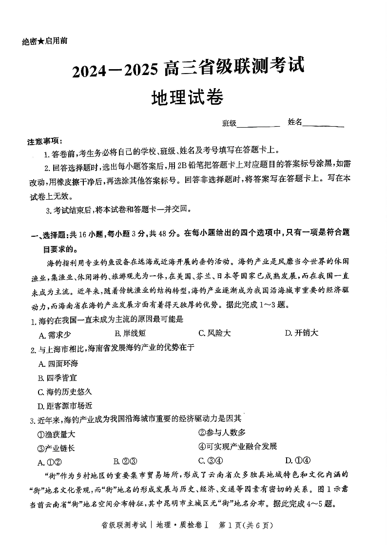 河北省2024-2025学年高三省级联测考试 地理.pdf