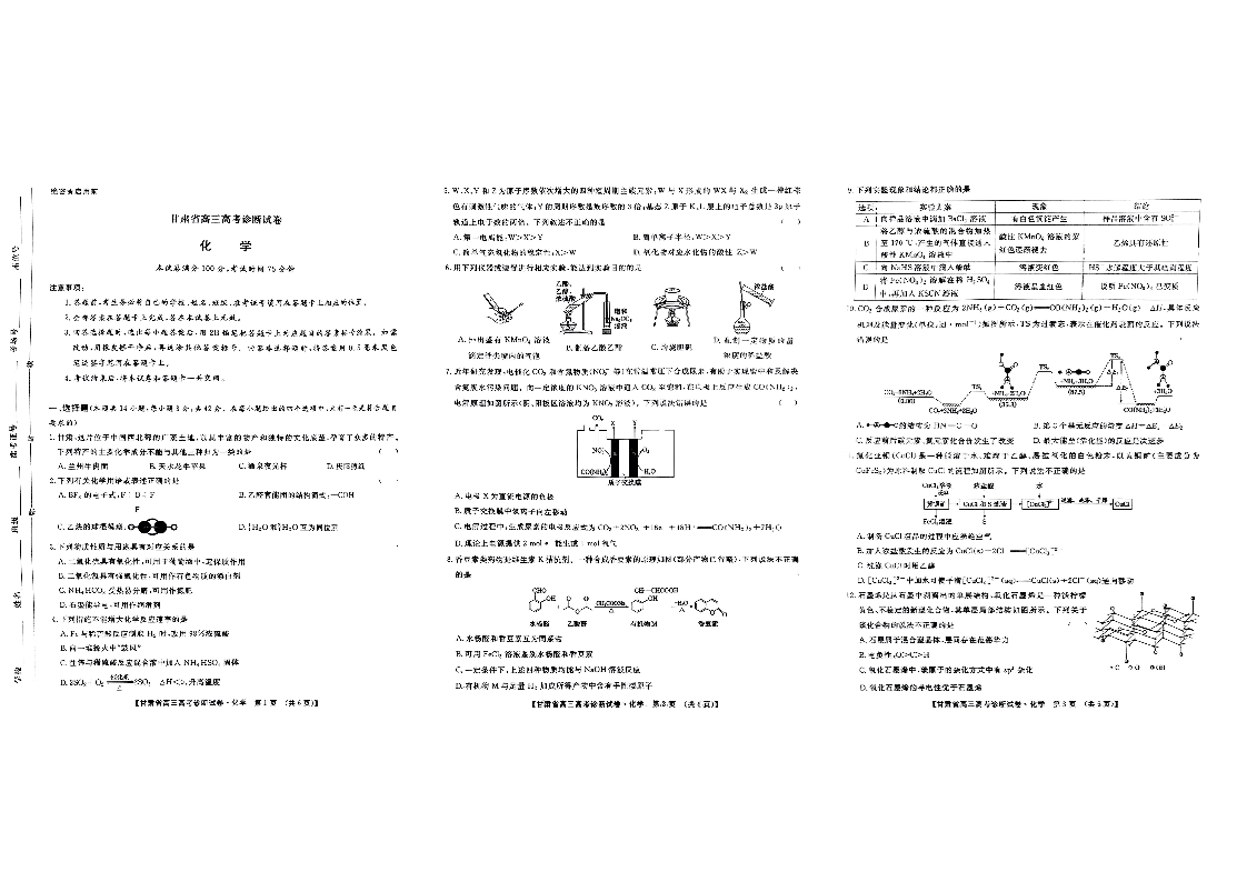 甘肃省2025届高三上学期12月高考诊断 化学.pdf