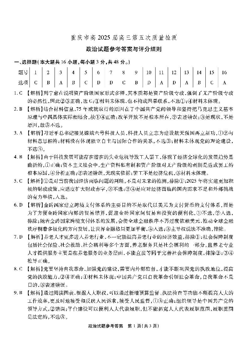 重庆市南开中学2025届高三第五次质量检测 政治答案.pdf