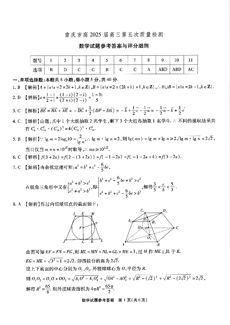 重庆市南开中学2025届高三第五次质量检测 数学答案.pdf