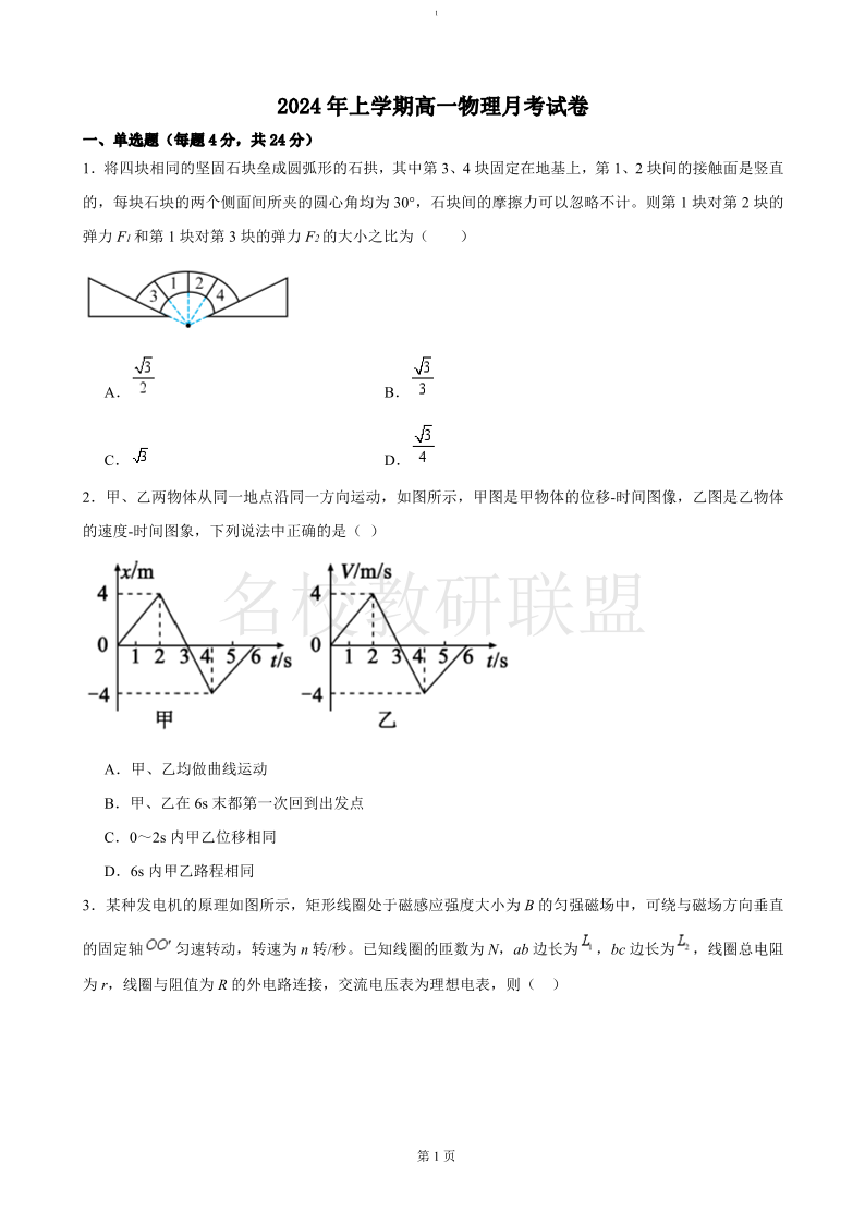 湖南省岳阳市岳阳县第一中学2024-2025学年高一上学期12月月考 物理.pdf