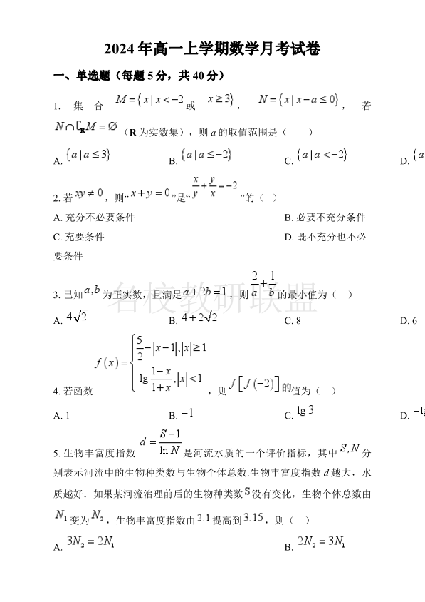湖南省岳阳市岳阳县第一中学2024-2025学年高一上学期12月月考 数学.pdf