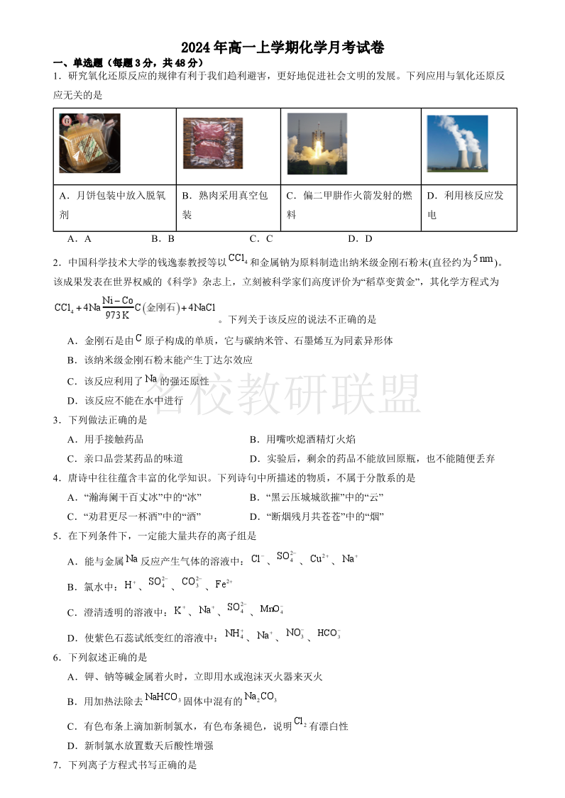 湖南省岳阳市岳阳县第一中学2024-2025学年高一上学期12月月考 化学.pdf