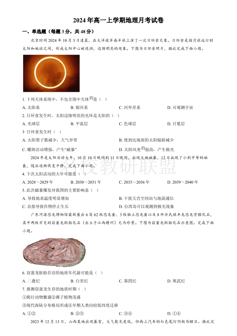 湖南省岳阳市岳阳县第一中学2024-2025学年高一上学期12月月考 地理.pdf