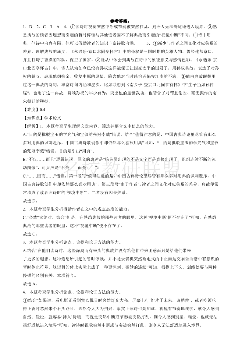 湖南省长沙市第十一中学2024-2025学年高一上学期12月月考 语文答案.pdf