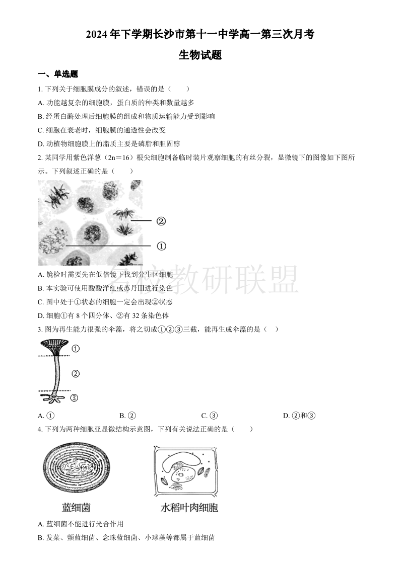 湖南省长沙市第十一中学2024-2025学年高一上学期12月月考 生物.pdf