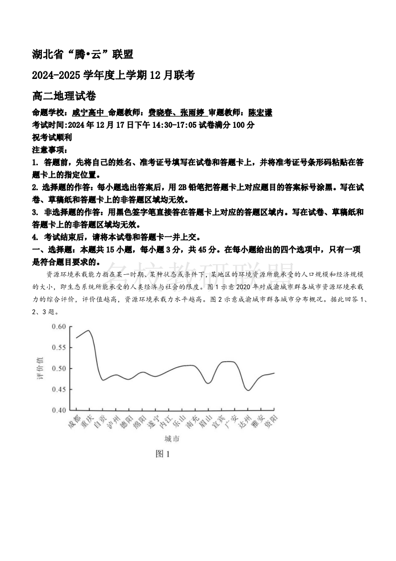 湖北省腾云联盟2024-2025学年高二上学期12月联考 地理.pdf
