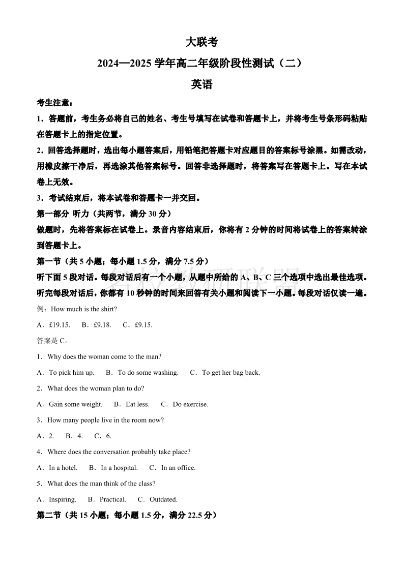 天一大联考2024-2025学年高二年级阶段性测试(二)英语答案.pdf