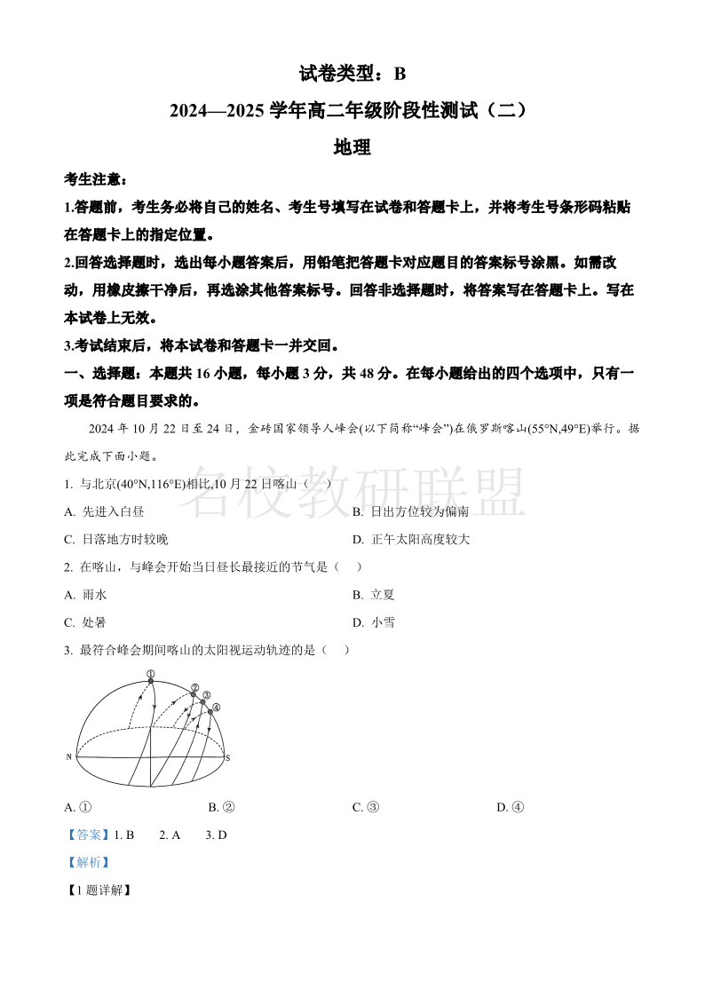 天一大联考2024-2025学年高二年级阶段性测试(二)地理答案.pdf