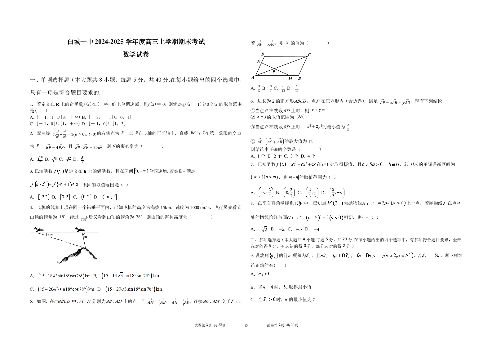 吉林省白城市第一中学2025届高三上学期1月期末考试 数学.docx
