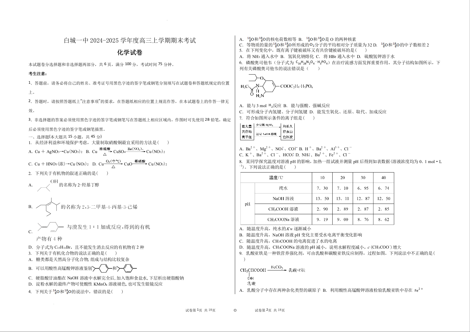 吉林省白城市第一中学2025届高三上学期1月期末考试 化学.docx