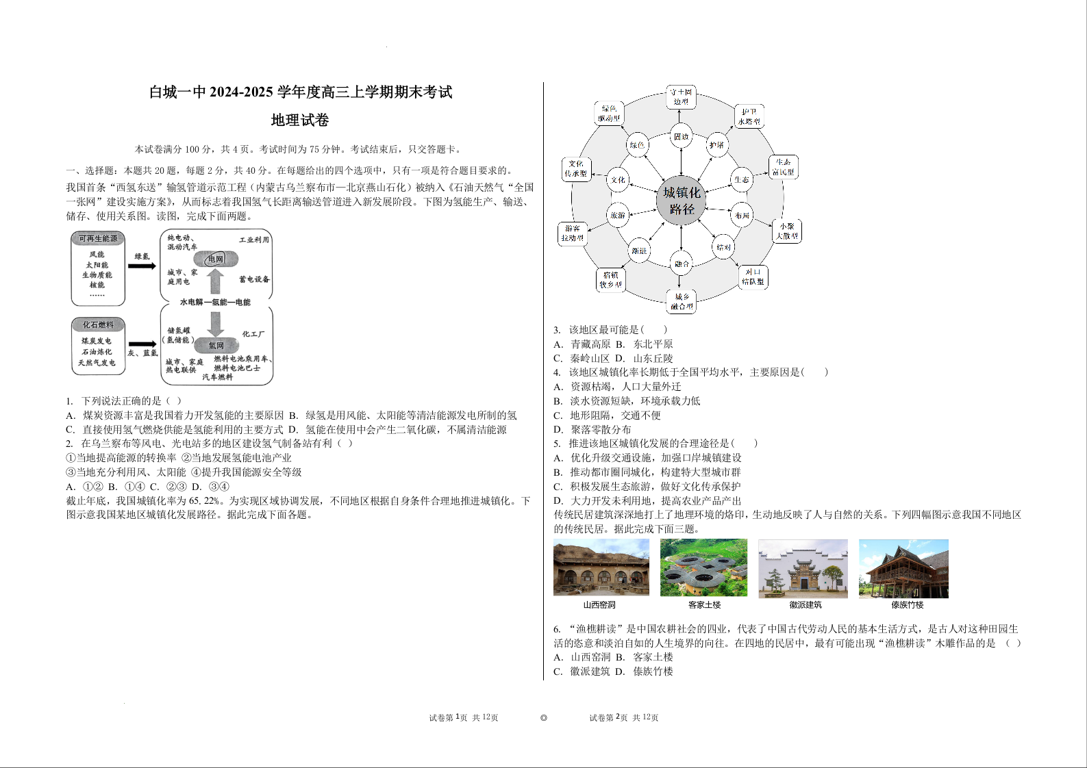 吉林省白城市第一中学2025届高三上学期1月期末考试 地理.docx