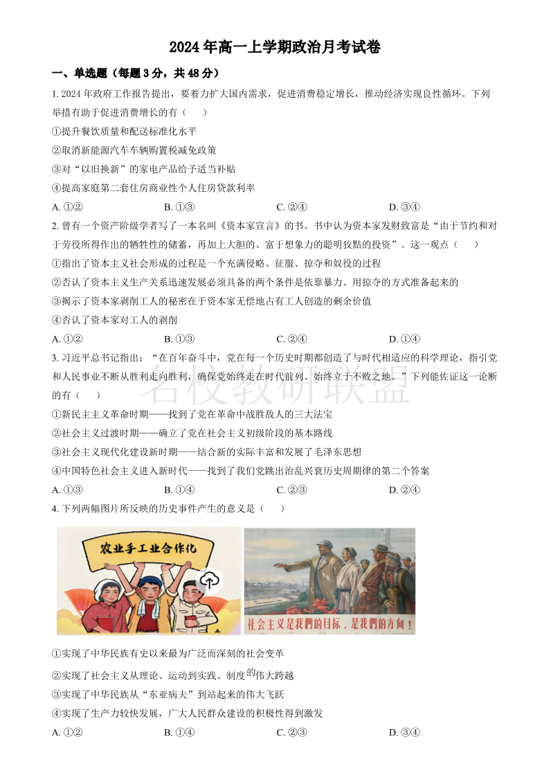 湖南省汨罗市第一中学2024-2025学年高一上学期12月月考 政治.pdf