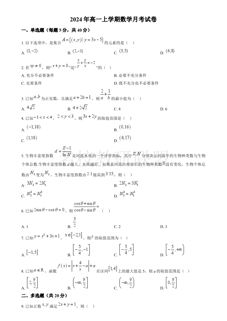 湖南省汨罗市第一中学2024-2025学年高一上学期12月月考 数学.pdf