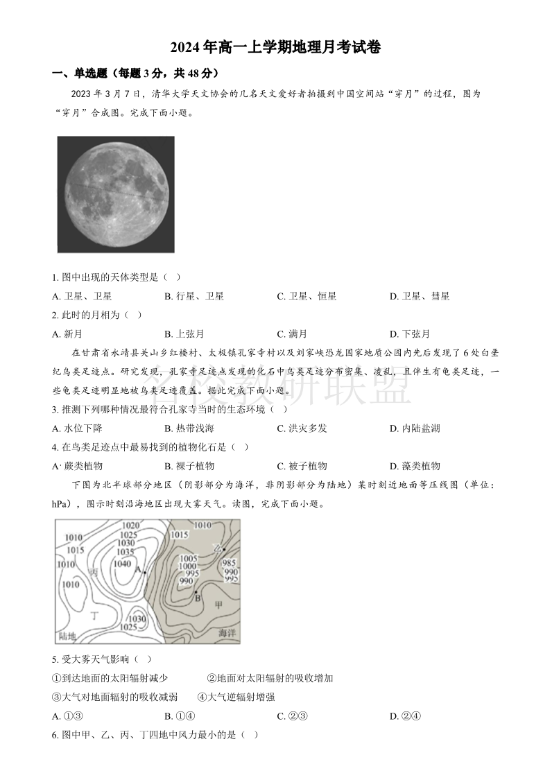 湖南省汨罗市第一中学2024-2025学年高一上学期12月月考 地理.pdf