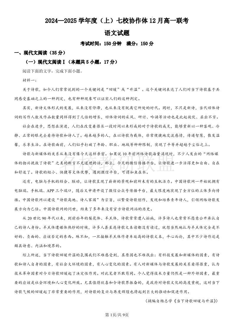 辽宁省七校协作体2024-2025学年高一上学期12月联考 语文.pdf