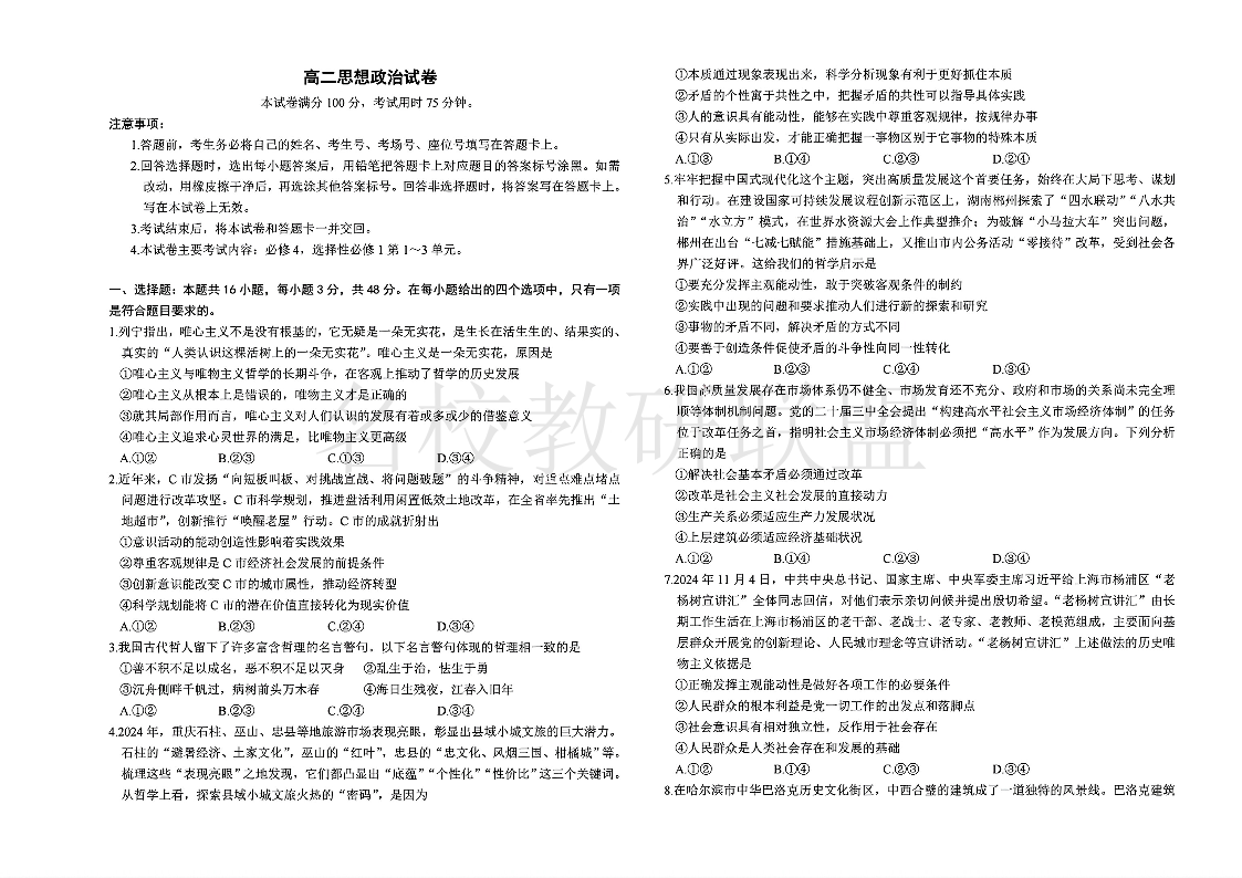 湖南省市县联考(示范性高中)2024-2025学年高二上学期12月月考 政治.pdf