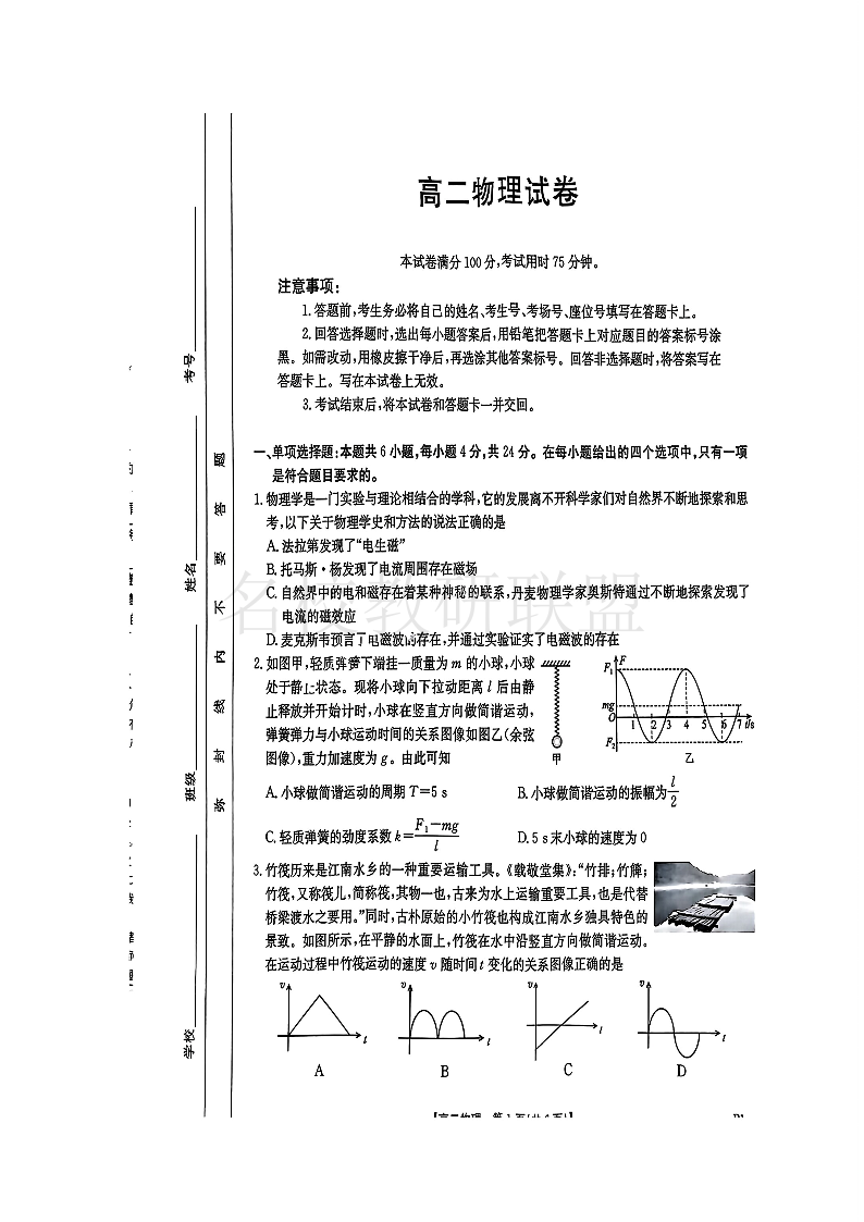 湖南省市县联考(示范性高中)2024-2025学年高二上学期12月月考 物理.pdf