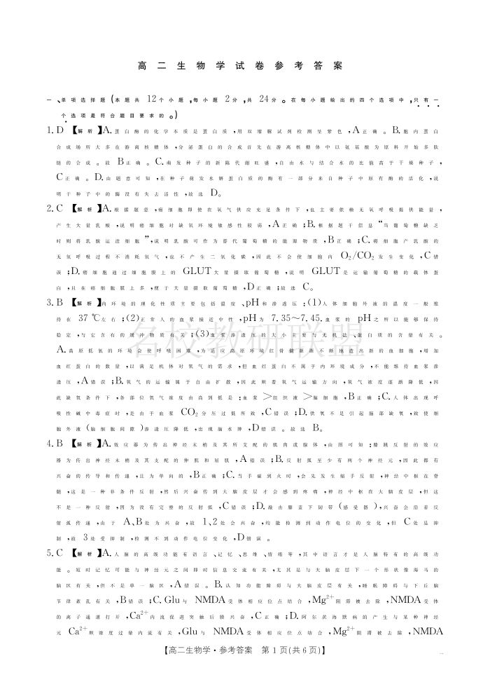 湖南省市县联考(示范性高中)2024-2025学年高二上学期12月月考 生物答案.pdf