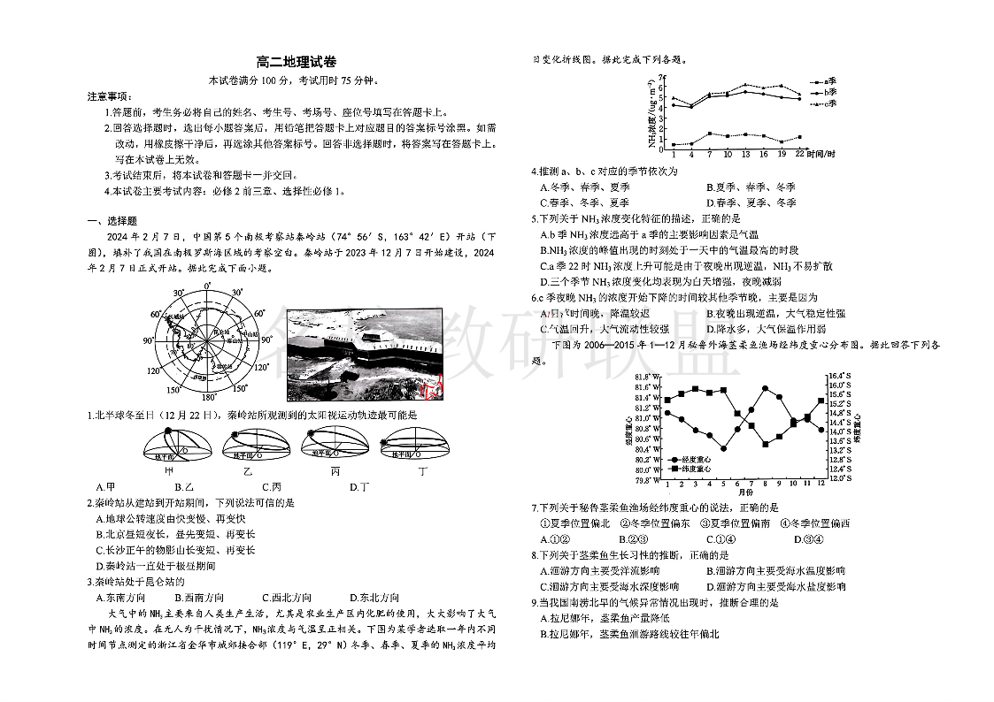 湖南省市县联考(示范性高中)2024-2025学年高二上学期12月月考 地理.pdf