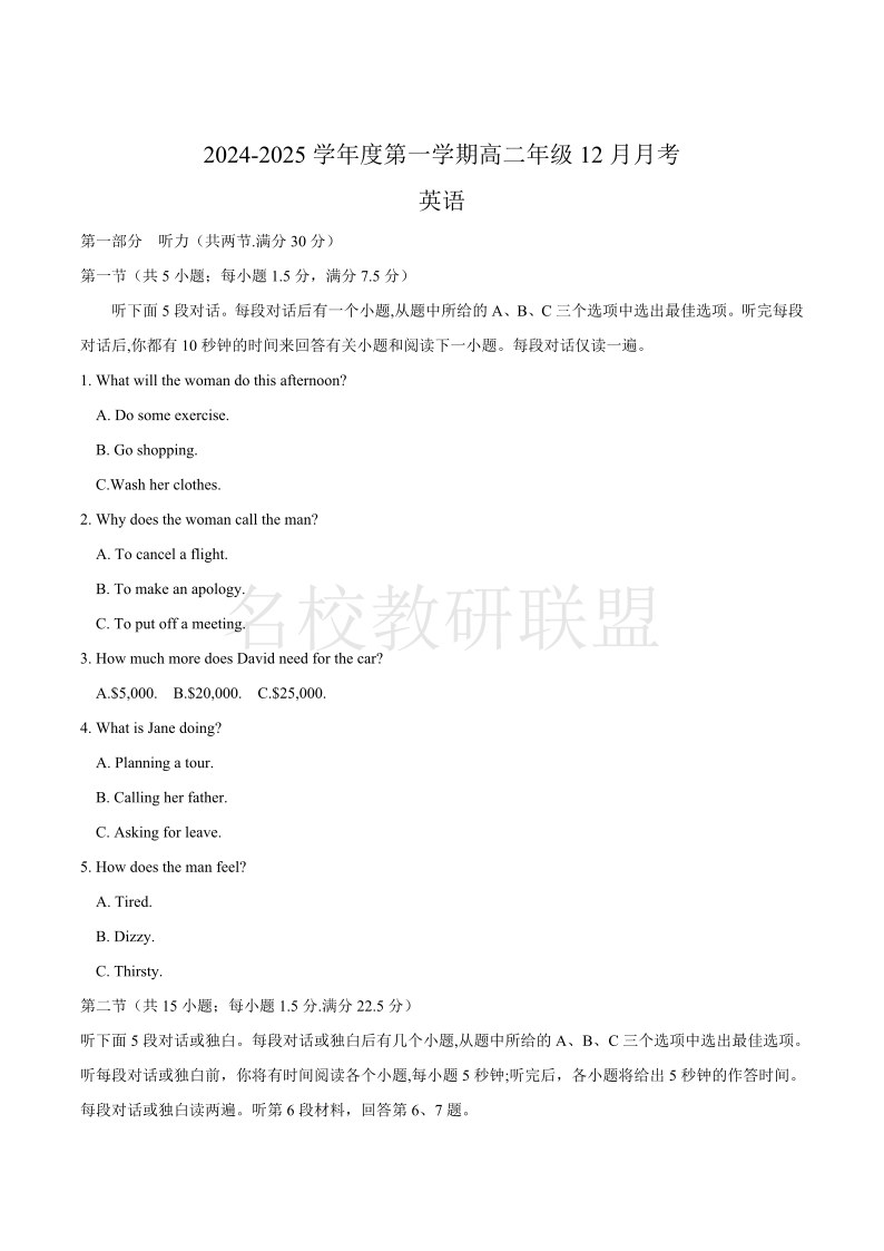 河北省沧州市十校2024-2025学年高二上学期12月月考 英语.pdf