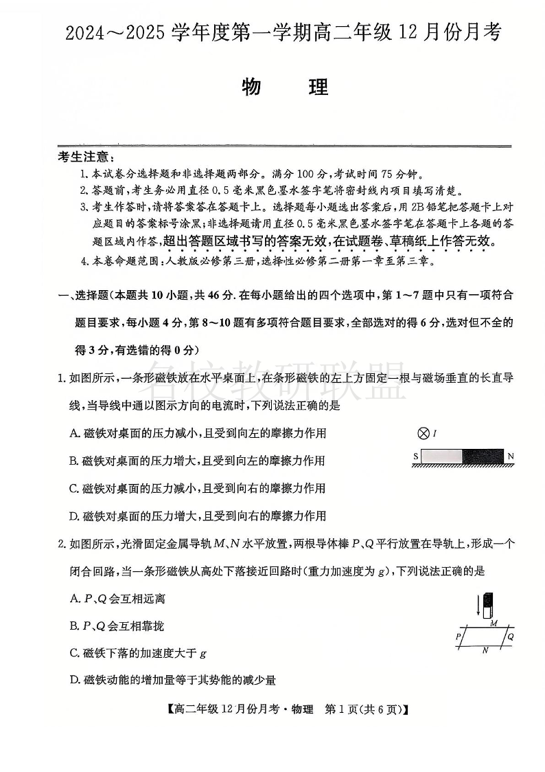 河北省沧州市十校2024-2025学年高二上学期12月月考 物理.pdf