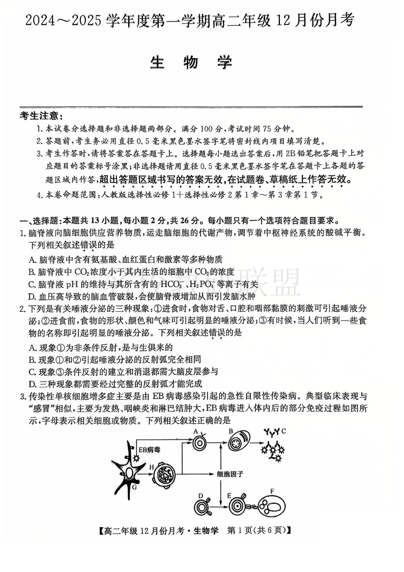 河北省沧州市十校2024-2025学年高二上学期12月月考 生物.pdf