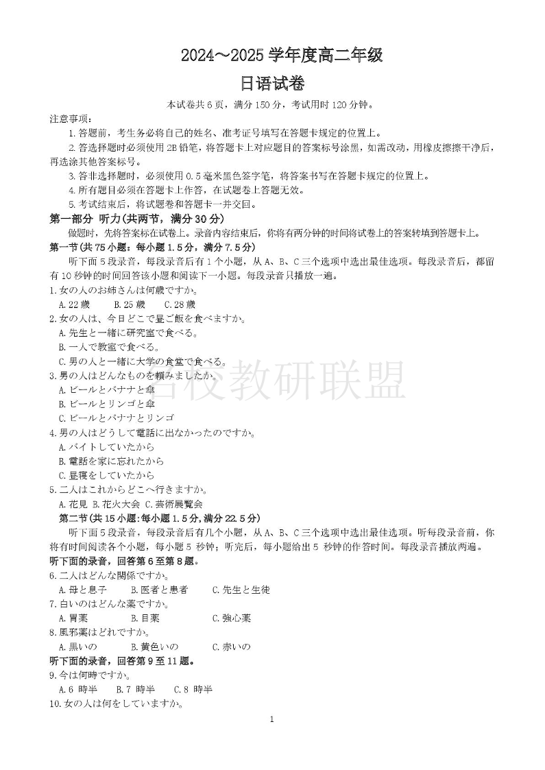 河北省沧州市十校2024-2025学年高二上学期12月月考 日语.pdf