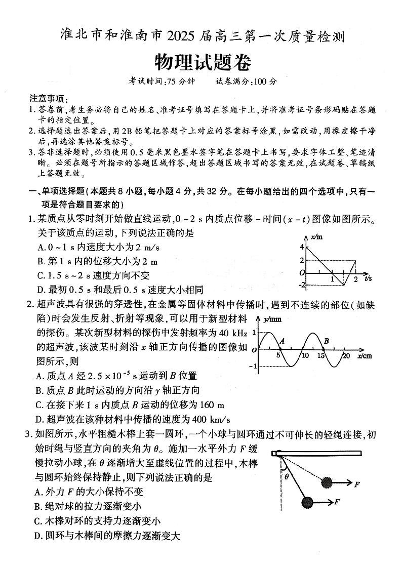 安徽省淮北市和淮南市2025届高三第一质量检测 物理.pdf