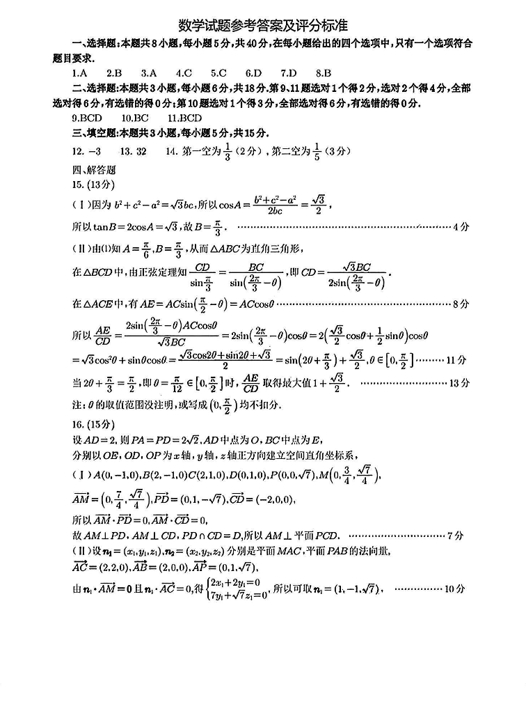 安徽省淮北市和淮南市2025届高三第一质量检测 数学答案.pdf