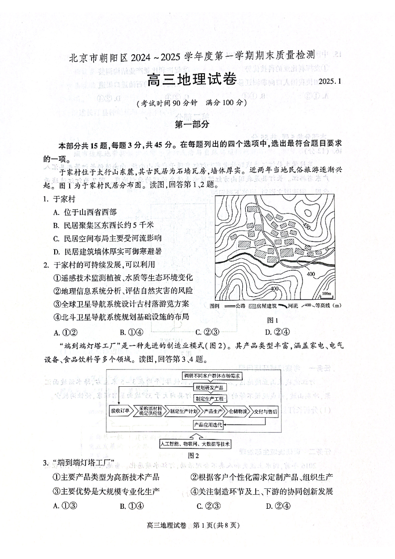 北京市朝阳区2024-2025学年高三第一学期期末质量检测 地理.pdf