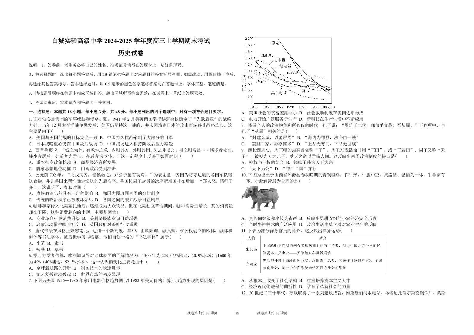 吉林省白城市实验高级中学2025届高三上学期1月期末考试 历史.docx