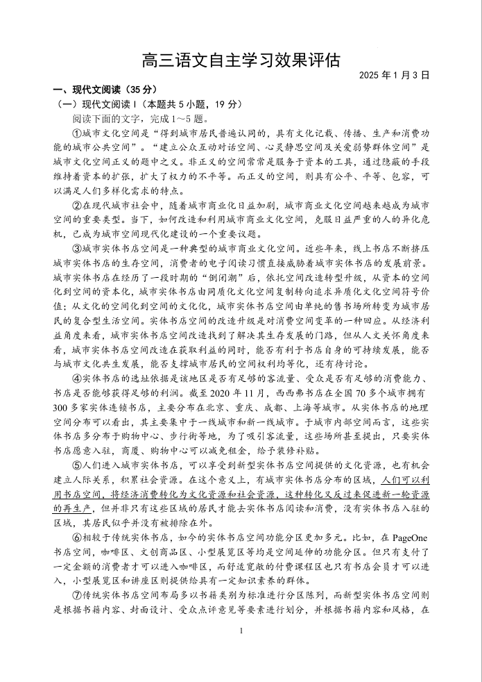 江苏省扬州中学2025届高三上学期1月月考 语文.docx