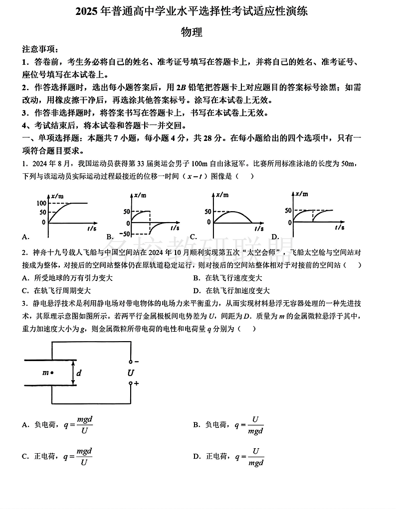 陕西、山西、宁夏、青海四省2025年高考综合改革适应性演练 物理.pdf