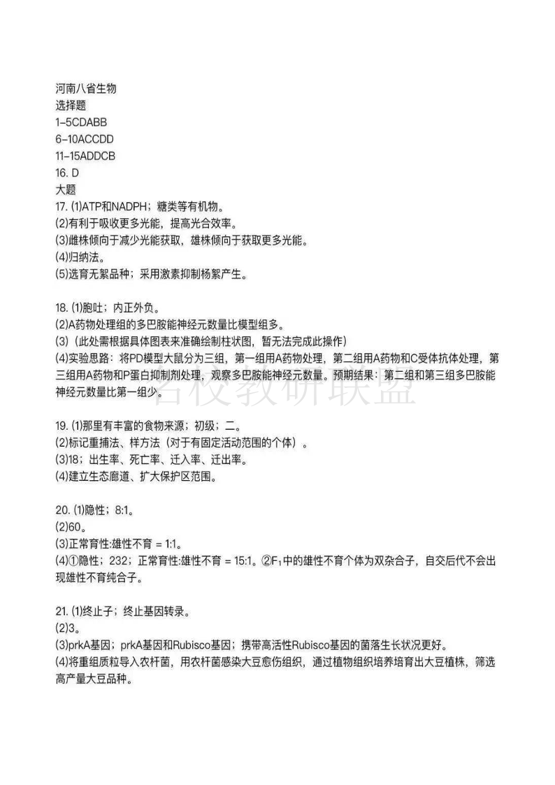 河南省2025年高考综合改革适应性演练 生物答案.pdf