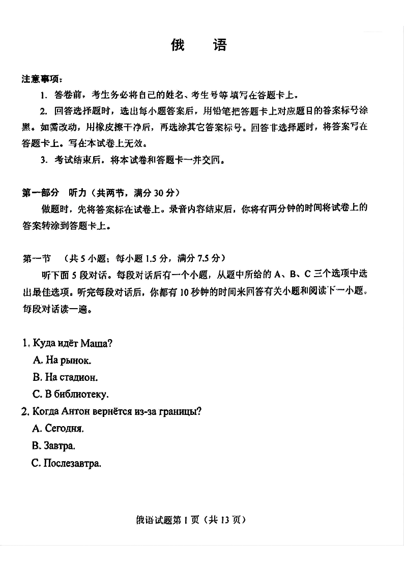 【八省联考】2025年高考综合改革适应性演练 俄语.pdf