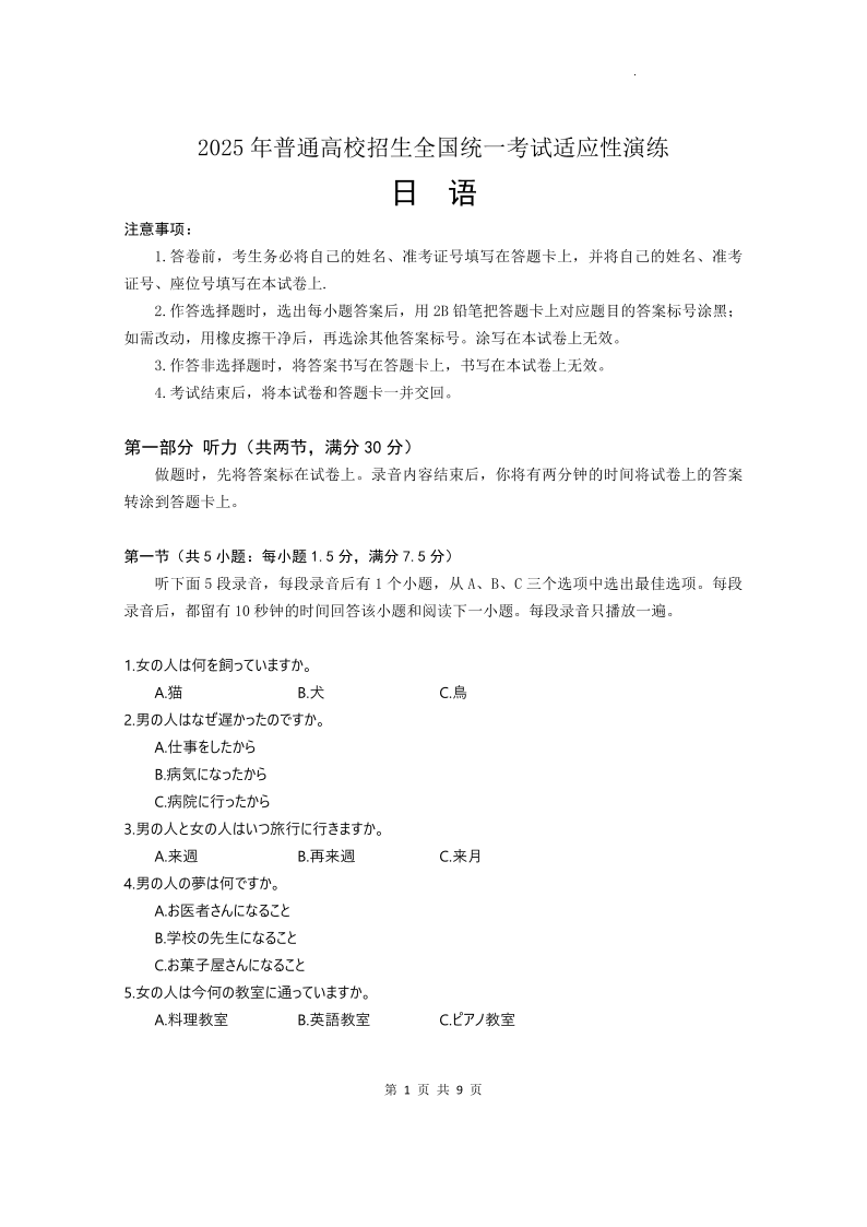 【八省联考】2025年高考综合改革适应性演练 日语.pdf