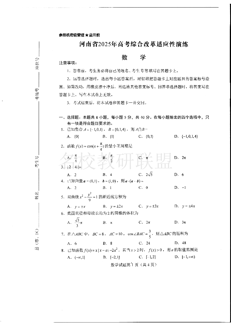 【八省联考】2025年高考综合改革适应性演练 数学.pdf