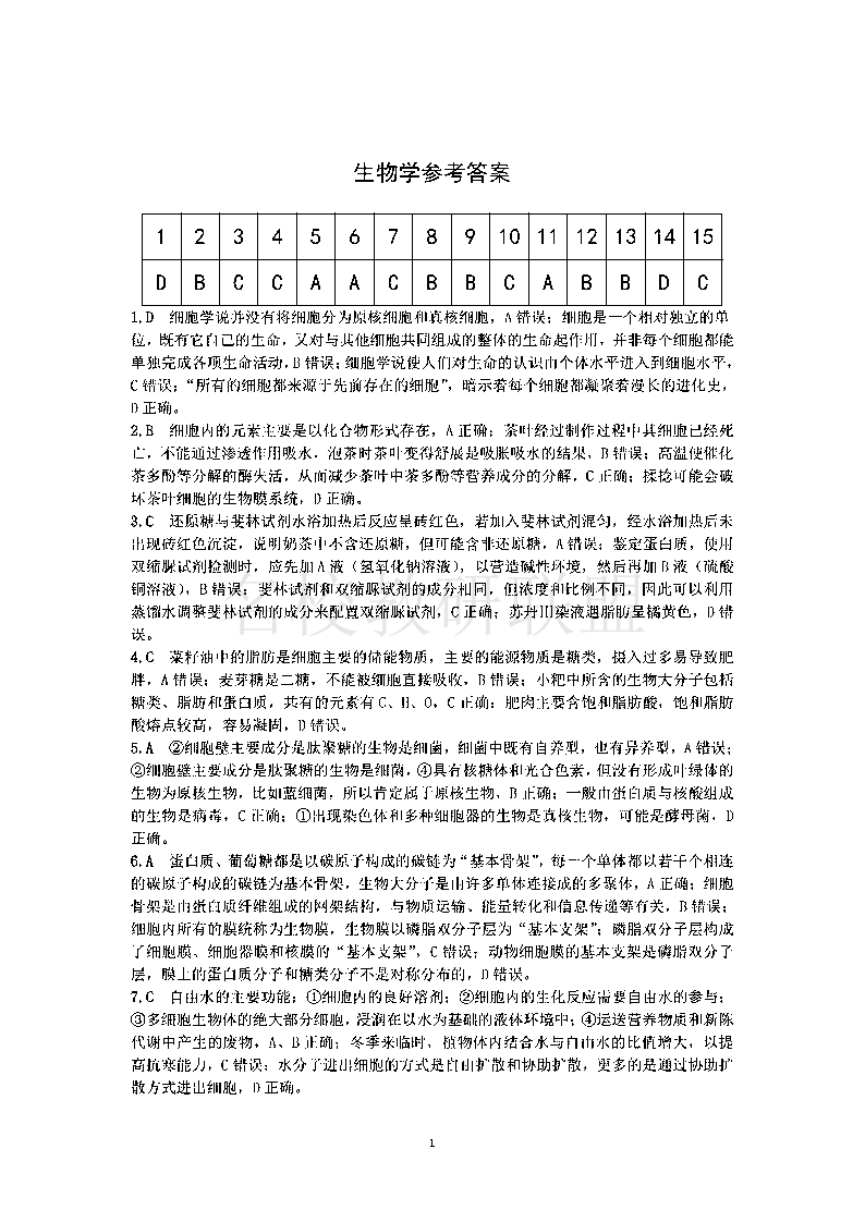 安徽师范大学附属中学2024-2025学年高一上学期12月月考 生物答案.pdf