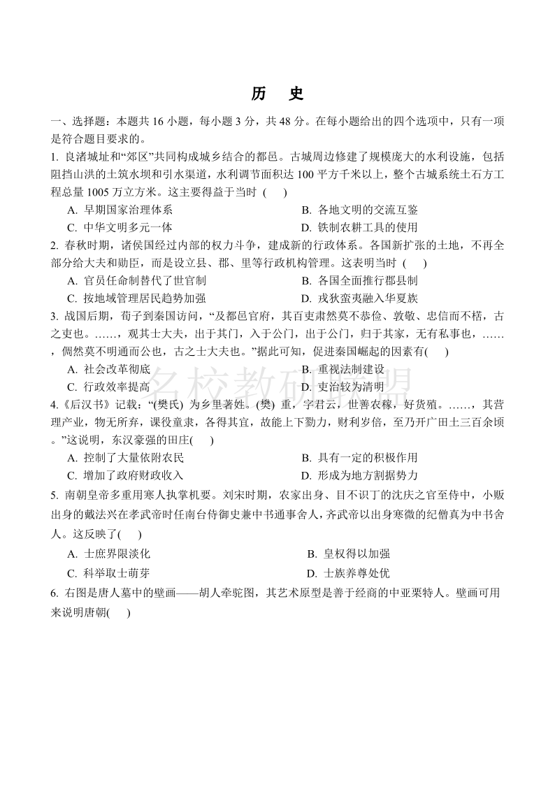 安徽师范大学附属中学2024-2025学年高一上学期12月月考 历史.pdf
