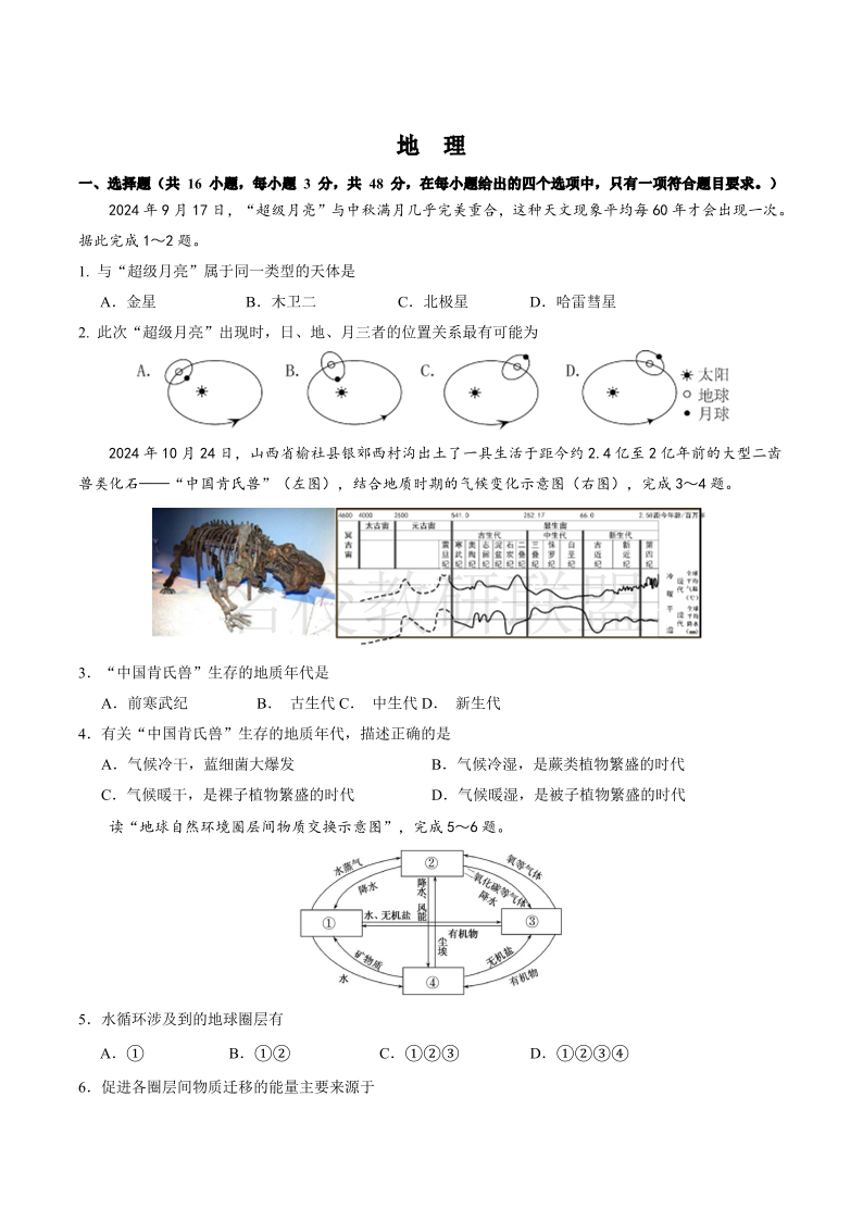 安徽师范大学附属中学2024-2025学年高一上学期12月月考 地理.pdf