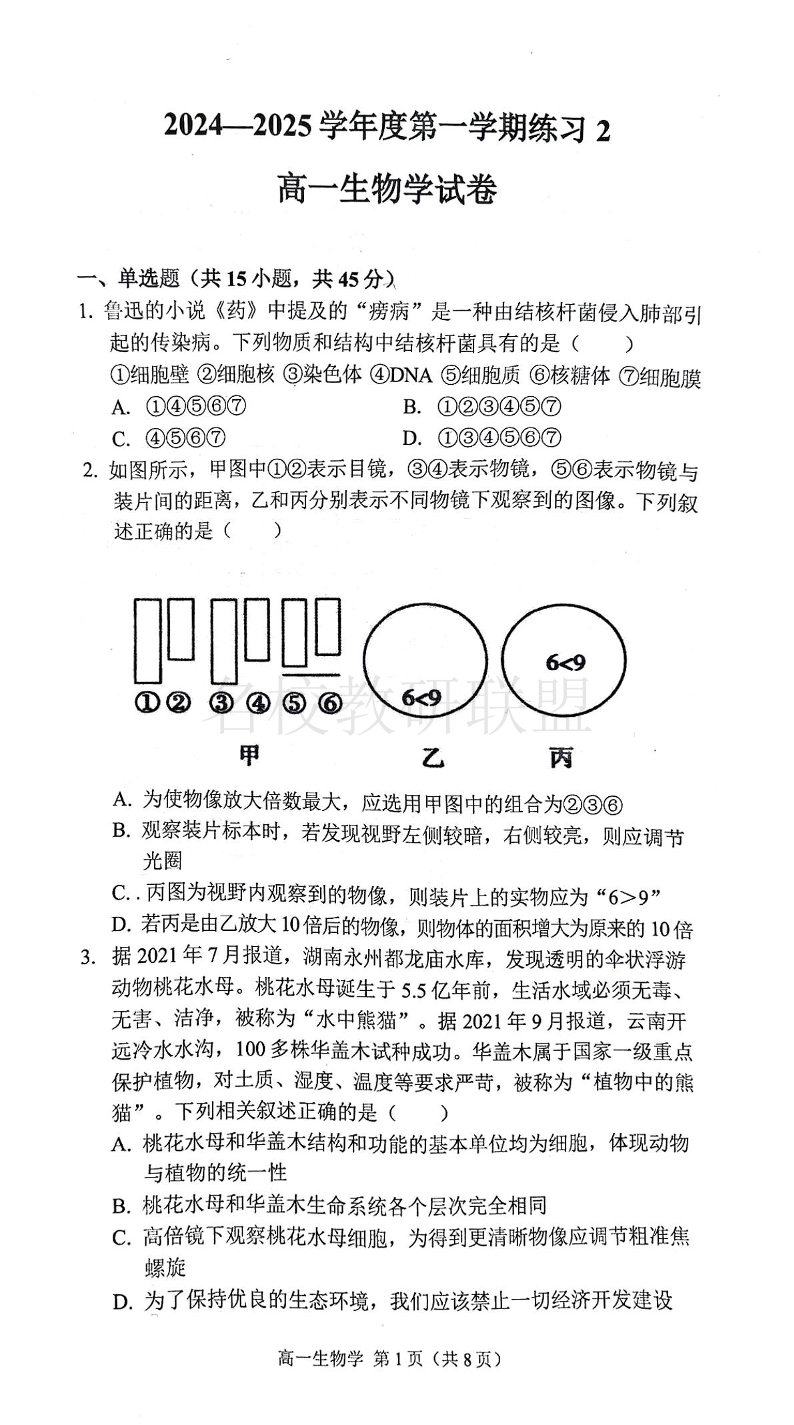 安徽省庐巢联盟2024-2025学年高一上学期第二次月考 生物.pdf