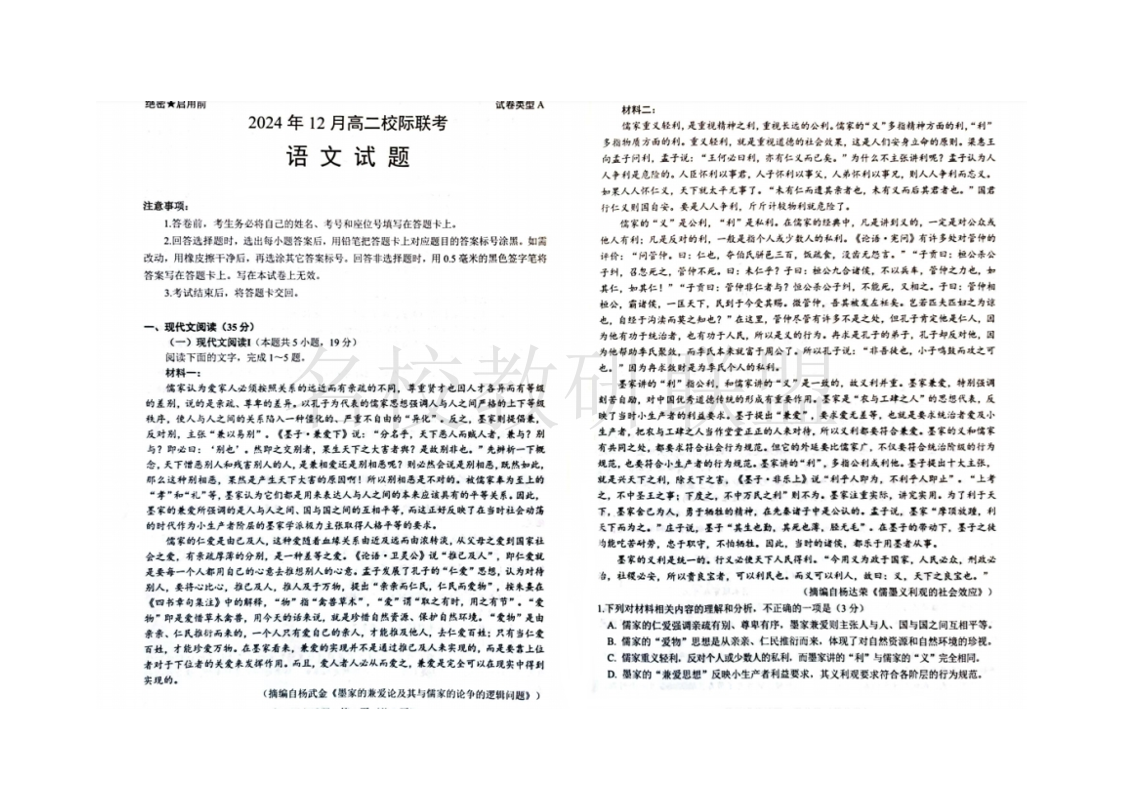 山东省济宁市校际联考2024-2025学年高二上学期12月月考 语文.pdf