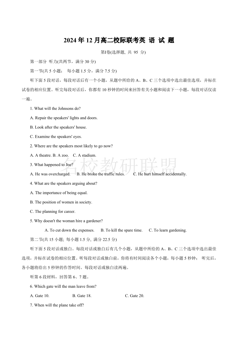 山东省济宁市校际联考2024-2025学年高二上学期12月月考 英语.pdf