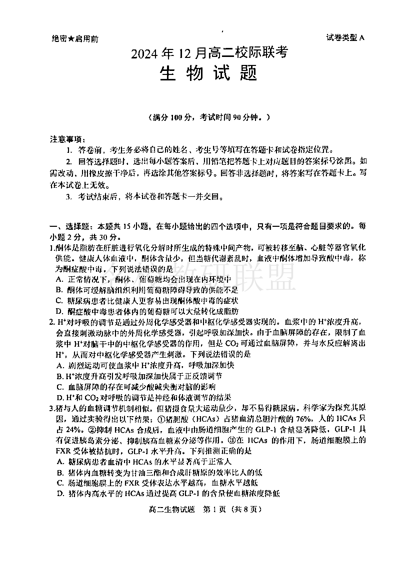 山东省济宁市校际联考2024-2025学年高二上学期12月月考 生物.pdf