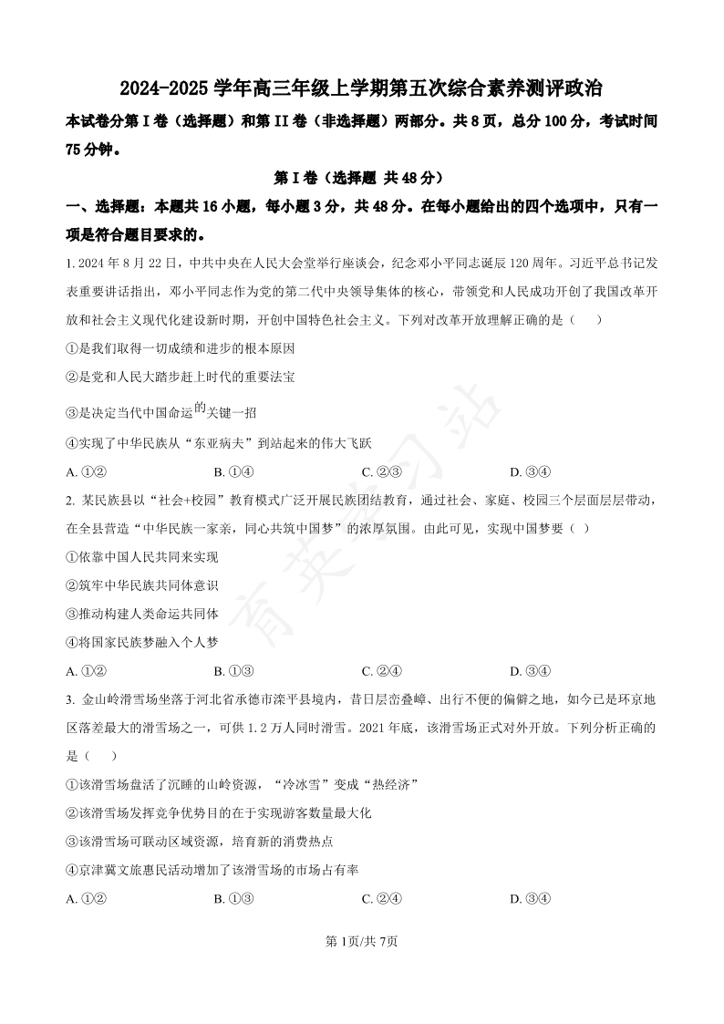 河北省衡水中学2025届高三年级综合素养测评(五)政治.pdf