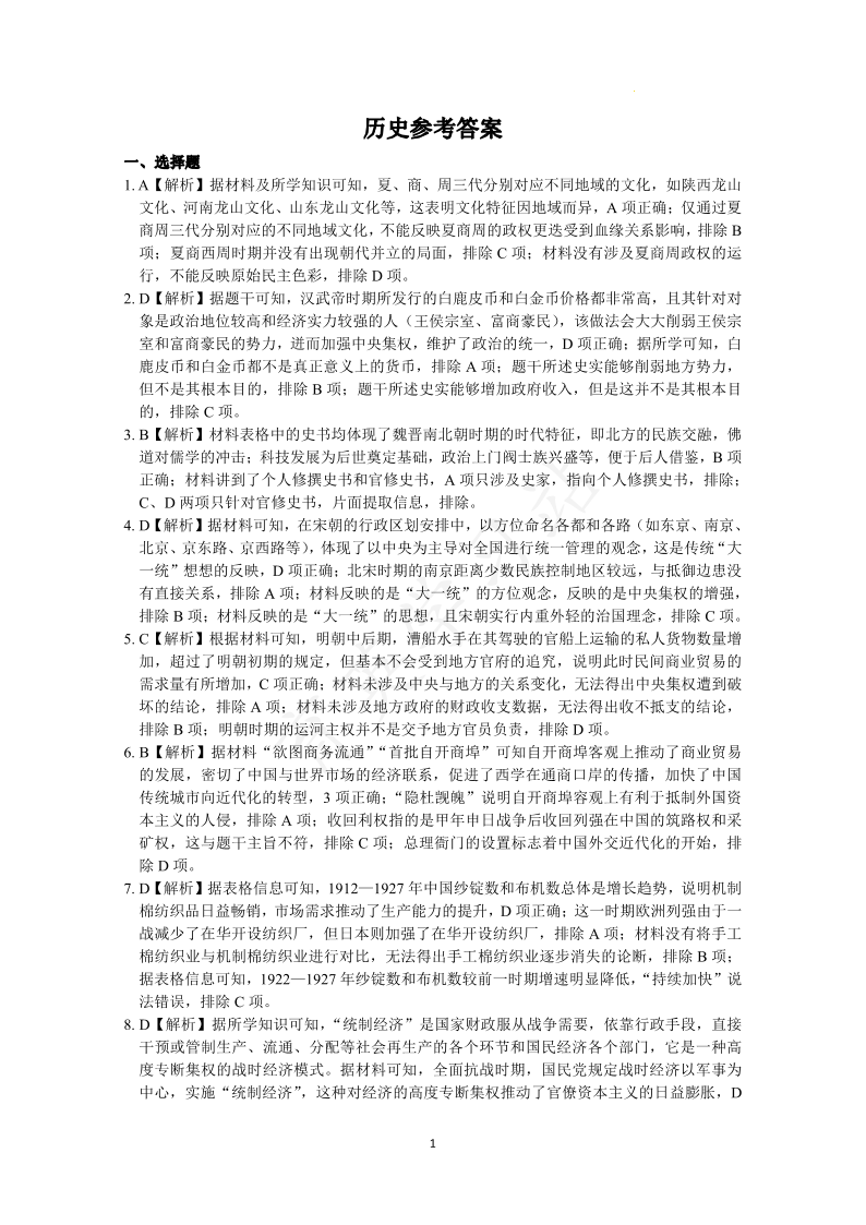 河北省衡水中学2025届高三年级综合素养测评(五)历史答案.pdf