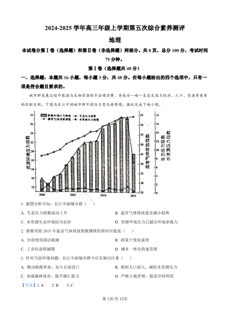 河北省衡水中学2025届高三年级综合素养测评(五)地理答案.pdf