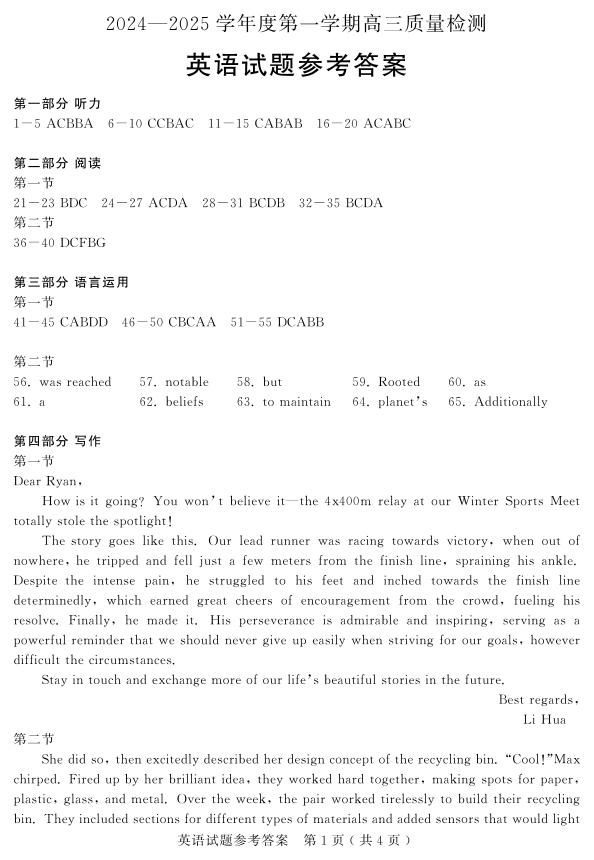 山东省济宁市2025届高三第一学期1月期末质量检测 英语答案.pdf